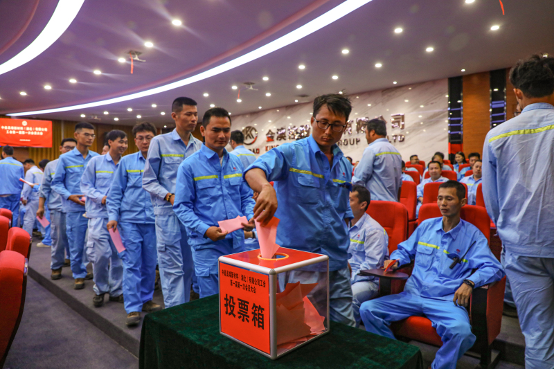 會上,經過公正、透明的選舉程序,成功選舉出了中能公司首屆工會委員會。金澳集團執行總裁吳讓生在會上宣布了選舉結果,并向當選的工會領導班子表示了熱烈的祝賀。他指出,中能高端新材料(湖北)有限公司的成立是金澳集團緊跟國家發展步伐、積極響應政策號召的重要舉措,肩負起產業轉型升級的重任。而工會的成立,則是為了更好地保障職工的合法權益,搭建起企業與職工之間的橋梁,推動企業的持續穩健發展。